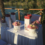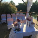Nádas étterem Vasad Esküvő, Nádas Pihenőpark esküvő ezúttal szeptember végén Ildivel és Norbival. A 130 fős násznép érkezése előtt érkeztünk 2 órával a Nádas legnagyobb rendezvénytermébe. A polgári szertartás ezúttal is a kis stégen volt megtartva ami gyönyörűen fel volt díszítve. A székeken fehér spandex huzat és púder színű masnik voltak. Az esküvő ceremóniamestere Csizmadia Péter volt, aki terelgette a násznépet a ceremóniára, a fotózáshoz, gratulációhoz az esküvő első óráiban. A fotózás után a helyfoglalás és a vacsora következett. A levest felszolgálták, de a többi fogást már mindenki a büféasztalról szedhette ki magának, számtalan finomság közül. Egyedül végig sem lehetett enni a feltálalt esküvői vacsorát, mert számtalan finomság volt előkészítve. Nem beszélve a desszertekről. Még aki diétázott az is elcsábult. A vacsora után mindenki a tánctér köré gyűlt a ceremóniamester hívására, és kezdetét vette a nyitótánc, ami egy keringő volt ezúttal. Tapsvihar és el is indultunk az Esküvői DJ bulival. A pár kérései szerint itt az első körben Rock’N’Roll klasszikusokat játszottunk, majd váltottunk a sok fiatalra tekintettel a 90-es évek magyar és nemzetközi slágereire. Gyakorlatban itt már az egész násznép bulizott és táncolt. Az első blokk hibátlan volt, amit megszakított az esküvői torta. A torta után ismét buli következett, az ezredforduló slágereivel, és 1-2 mai ismert nótával, ez a blokk egy órán keresztül tartott, amit a menyasszonytánc követett, ezúttal is mulatós zenére. A menyasszonytánc 30 perces volt. Ildi a menyasszony kissé elfáradt mire letáncolt 130 vendéggel. A pár elment átöltözni, ekkor mi folytattuk az esküvői bulit, ami reggel 5-ig tartott. Hozzávetőleg 60-70 vendég aludt a Nádas Pihenőparkban a Tó Park Hotelben, ahol egyszerre 3 esküvőt is tudnak csinálni, úgy, hogy nem zavarják egymást. Évek óta járunk Vasadra esküvőzni, minden alkalommal nagyon kedves és segítőkész fogadtatás vár minket, nekünk a szolgáltató véleményünk kiváló a Nádas Pihenőparkról, Tó Park Hotelről.