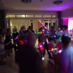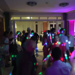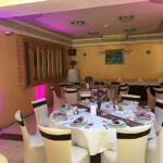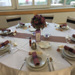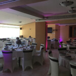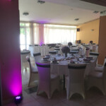 Az Alfa Art Hotel étterem közvetlen a Duna parton van Békásmegyer és a Római part határán van a Királyok útján. A dekoráció színe lila és fehér volt, már a kész, feldekorált esküvőhelyszín fogadott minket délutáni érkezésünkkor. Az esküvő első részeként polgári szertartást hangosítottunk a térköves teraszon, ide telepítettük a hangosítást és a vezeték nélküli mikrofont és a buborékfújó gépünket is. A pár a bevonulást a szertartáshoz a zenéket előre elküldte nekem, ezúttal klasszikus zenékre zajlott a polgári esküvő, ami nagyon szép volt a szeptemberi időben. Az esküvő bent folytatódott a vacsorával, amihez az Alfa Art Hotel kedves személyzete szállította a bőségtálakat, hagyományos esküvői menüsor volt, ami pompásan finomra sikeredett. A násznép nem bírt magával és már a vacsora előtt beindult a buli, amikor a buborékfújó gépet bekapcsoltuk csatlakoztak a kisgyerekek is. A vacsi után elkezdődött az esküvői buli, amit a pár nyitott meg a nyitótáncával. Az első blokkban nagyjából 2 órát esküvő DJ–ztünk, majd következett az esküvői torta, ami lekövette a dekor színét, itt is visszaköszönt a lila szín. Az esküvői party reggel 4-ig tartott, többen a násznép körül itt ezen a római parti szálláson az Alfa Art Hotelben kaptak szállást.