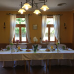 Rita és Csabi esküvője Fóton a Botos Vendéglőben. Egy családiasabb 40 fős esküvőre voltunk hivatalosak ezúttal Fótra a barátságos Botos Étterembe. Gyorsan bepakoltam a saját parkolóval rendelkező kerthelyiségből az esküvői dj szolgáltatáshoz szükséges technikát az étterembe, majd vártam a vendégeket finom vendégváró zenével, ami ezúttal happy jazz és swing dallamok voltak. Nagy dudálások között meg is érkezett Rita és Csabi és násznépük a helyszínre. Lepakolás, megérkezés után kezdődött a kis és nagycsoportos fotók elkészítése a kertben. Akik már végeztek a fotózással, ők a zöld színűre feldekorált étteremben az ujjlenyomatfánál hagyhatták ott az ujjlenyomatukat néhány kedves jókívánsággal együtt, amolyan modern emlékkönyv formájában. Idő közben mindenki megéhezett, és kezdetét is vette az esküvői vacsora a fóti étteremben. Klasszikusnak mondható tyúkhúsleves majd sültes tál következett. Ezalatt Rita és Csabi felkészült a nyitótáncra, hogy megnyissa az est zenés-táncos, bulis részét. Sokat gyakoroltak otthon és a tánctanárral, hogy tökéletes legyen a nyitótánc, és végül az is lett. Tapsvihar közepette ünnepelte a párt a násznép, de mi ekkor már indítottuk is az esküvői DJ bulit, a 80-as éves DISCO slágereivel, amit hamar az éneklős 90-es évekbeli magyar slágerek követtek. Ezekkel a dalokkal csaknem elértük, hogy a násznép 100%-a táncoljon. Este 11 körül érkezett az esküvői torta, majd a menyasszonytánc következett ami ezúttal is mulatós zenére zajlott le. A buli hátralévő részében a 2000-res évek slágereit és a napjaink aktuális dallamait pörgettük, ezzel fenntartva a jó hangulatot, táncot. A kis létszám ellenére szuper buli lett, nem volt panasz a közönségre, a pár szerint meg a zenére nem volt panasz. Köszönjük, hogy itt lehettünk. Ajánljuk a Botos Vendéglőt mindenkinek.