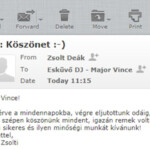 Nem lehet elmenni amellett a tény mellett, hogy az esküvői dj felkéréseimnek több mint a fele ajánlás útján jön. Vagyis az elmúlt években láttak-hallottak egy másik esküvőn, rendezvényen. Számomra ez a legjobb, 0 Ft-os reklám. Tehát a saját jól felfogott érdekem, hogy minden kiválóan sikerüljön, és minden vendég úgy távozzon a buli végén, hogy jól érezte magát. Ebben a szezonban is sok pozitív csalódás volt az ” Esküvő DJ ” dologban. Több párom említette meg az esküvő után, hogy bizony voltak olyan rokonok, nagyszülők, akik nem bíztak az esküvő dj-ben, mint szórakoztatási formában, mert ” csak tucc-tucc zenét tud játszani „, meg amúgy is ” az esküvőre zenekar való .” Szerencsére ezekben az emberekben sikerült pálfordulást elérnem, vagyis megváltozott a hozzáállása a DJ-s esküvőkhöz. Idén volt egy nagyon kedves 70 év körüli hölgy, aki a buli vége felé odajött hozzám, és megfogta a vállamat és annyit mondott: – Tudja fiatalember, maga a lánykorom kedvenc zenéit játszotta és ismét fiatalnak éreztem magam. Úgy gondolom, hogy ez mindent elmond. Egy jó zenei szelektornak fel kell ismernie, hogy az épp ott a tánctéren lévő embereknek, mi a zenei igénye, látnia kell a tánctéren, és ezek alapján játszani a zenéket, hogy mindenki megkapja a zenei igényét. Jómagam így ebben a szellemben tevékenykedem, és ezen nem kívánok változtatni, ahogy azon sem, hogy a munkám során nem fogyasztok alkoholt és nem dohányzom, így nem fordulhat elő az, hogy: ” A DJ már este 10-kor be volt rúgva „, vagy épp kinn van cigi szüneten. Most íme pár visszajelzés, értékelés, vélemény a munkámról. Nézegessétek meg, hoztam pár közös fotót is a párjaimmal.