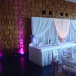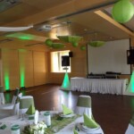 A lámpák színét tudjuk az esküvő, rendezvény színéhez is igazítani. A fényjáték hatása biztosan tetszi fog az érkező vendégeknek is, a fotósok, videósok igényes felvételeket tudnak egy ilyen helyszínen készíteni. Optikailag kitágítja a fény a teret.