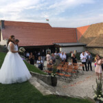 Etyeken a Rókusfalvy Birtokon esküvőztünk, ami frissen lett átalakítva, felújítva. Az az igazság, hogy jót is tett a korszerűsítés, mert így igényesebb és designosabb lett Etyek egyik legjobb esküvőhelyszíne. Ági és Zoli esküvője szeptember közepén került megrendezésre a szőlőtőkék alatt, vintage stílusban, szabadtéri szertartással, aminek a hangosításával engem bízott meg a pár. A polgári esküvő 17:00-ra volt kiírva, amihez a pár előre megadta nekem, hogy melyik 5-6 dalt szeretnék hallani a ceremónia alatt, majd a kis és nagycsoportos fotók elkészítése következett. Ezután jött 19:00-kor az esküvői vacsora, amit 22:30-kor a torta érkezése követett. A nap folyamán etyeki Rókusfalvy borokkal és limonádékkal frissíthették a vendégek magukat, a sztenderd rövid italok és üdítők mellett. A 80 fős násznépet „U” formában kialakított asztalokhoz ültették le, a dekoráció elemeit sok-sok élővirág és a párról készült több helyen belógatott jegyes fotók tették egyedivé. A mosdók is egyből elérhetők abból a helységből, ahol az esküvői party van, ez csak azért lehet fontos, mert eddig át kellett menni egy másik kis épületbe, ahol a mosdók, WC-k voltak. Összességében előnyére változott a Rókusfalvy birtok, szebb és igényesebb, színvonalasabb helyszín lett, kedves felszolgálókkal és finom ételekkel, így tehát nekünk kifogástalan a véleményünk a megszépült Rókusfalvy Birtokról.